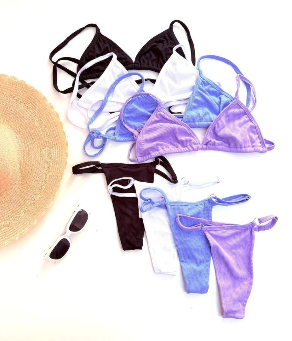 Disponível em três lindas cores - Branco, Rosa Claro e Lilás - o Biquíni Feminino de Fita em Ribana Babi Ref. 1351 permite que você escolha a tonalidade que mais combina com o seu estilo e personalidade. Seja mais clássica com o Branco, romântica com o Rosa Claro ou descolada com o Lilás - a escolha é sua!